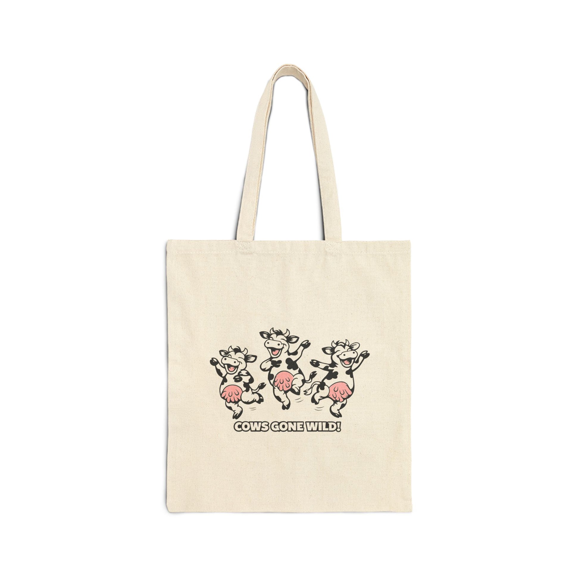 Cows Gone Wild Canvas Tote Bag — Funny Dancing Cow Eco Grocery Shopper