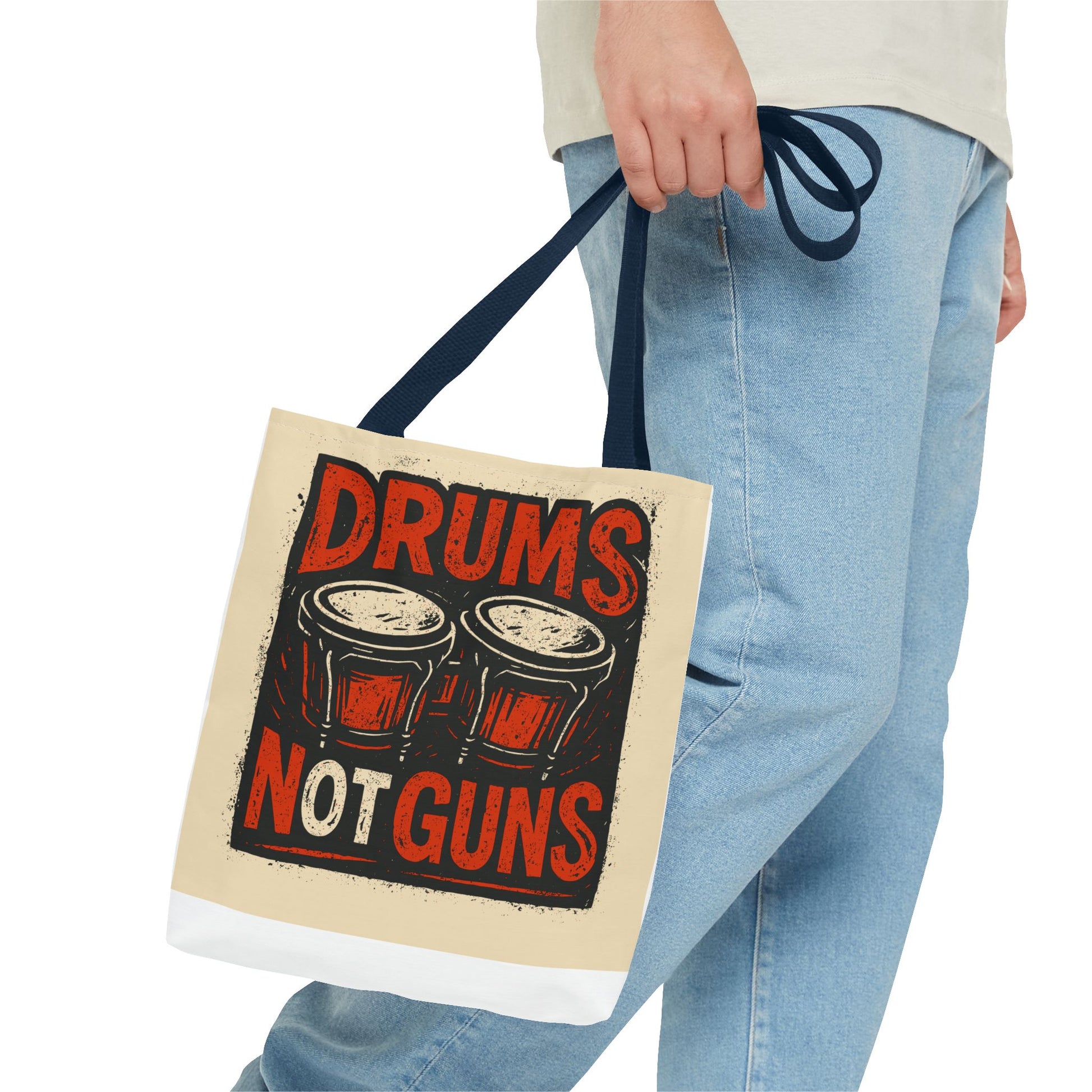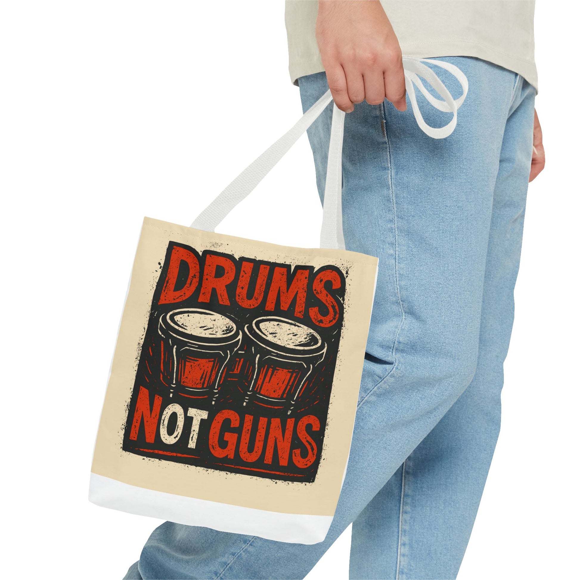 Drums Not Guns Tote Bag — Retro Percussion Protest AOP Tote