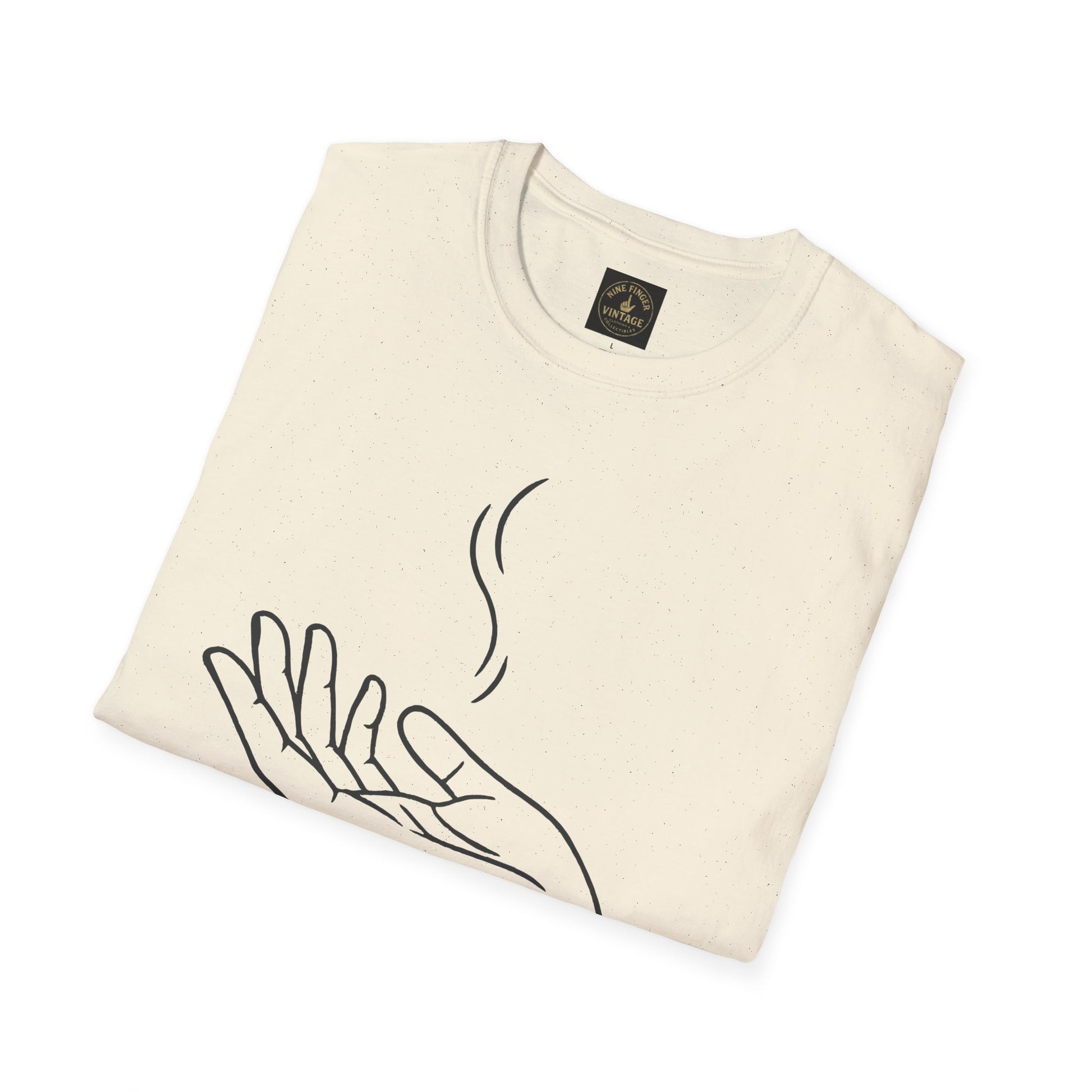 A quietly striking tee that holds a moment of surrender. The minimalist line drawing of an open hand—soft, surreal, slightly detached—invites a calm exhale. Wear it on slow mornings, during an evening walk, or while practicing breathwork; the shirt reads like a small reminder to release what’s weighing you down. The lightweight, smooth cotton feels gentle against skin, while the understated design keeps the focus on the mood: mindful, uncluttered, intentional. It layers easily under a cardigan or stands alone with worn denim, becoming a subtle emblem for anyone carving out space for stillness in a busy life.