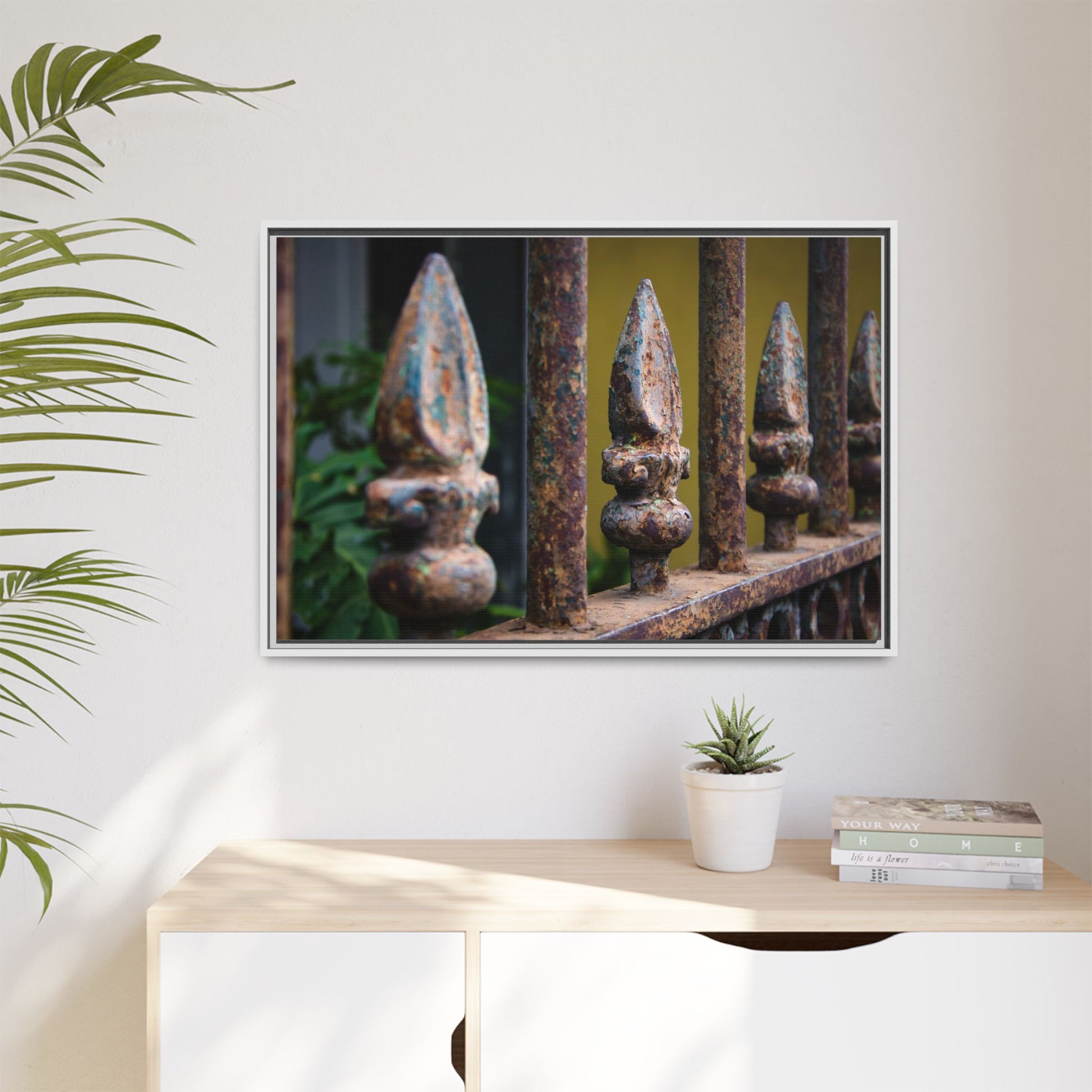 New Orleans Wrought Iron Matte Canvas Framed Wall Art — Rusted Iron Finials