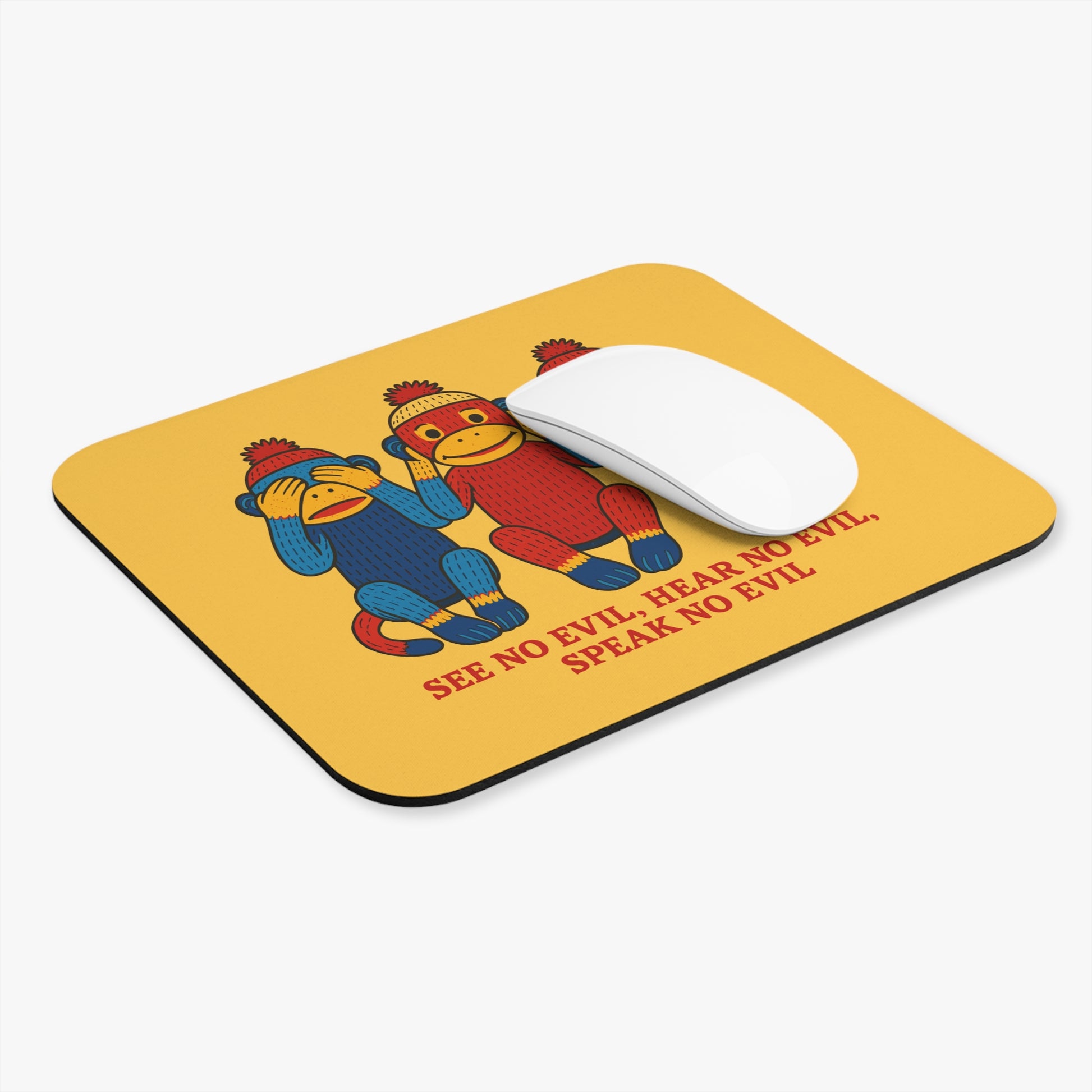 See No Evil Sock Monkey Mouse Pad - Retro Three Wise Monkeys Desk Mat