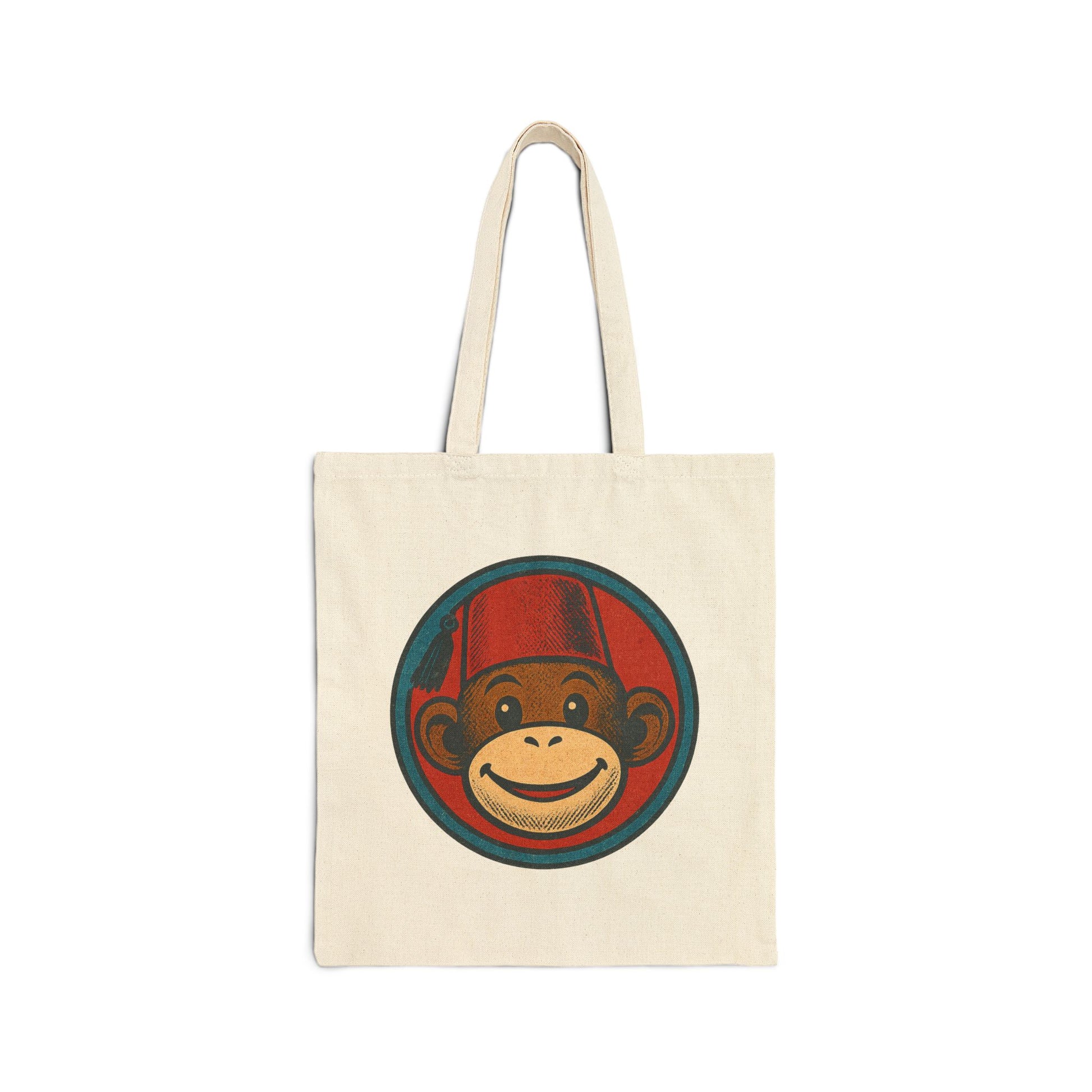 Smiling Monkey with Fez Tote Bag | Retro Cartoon Canvas