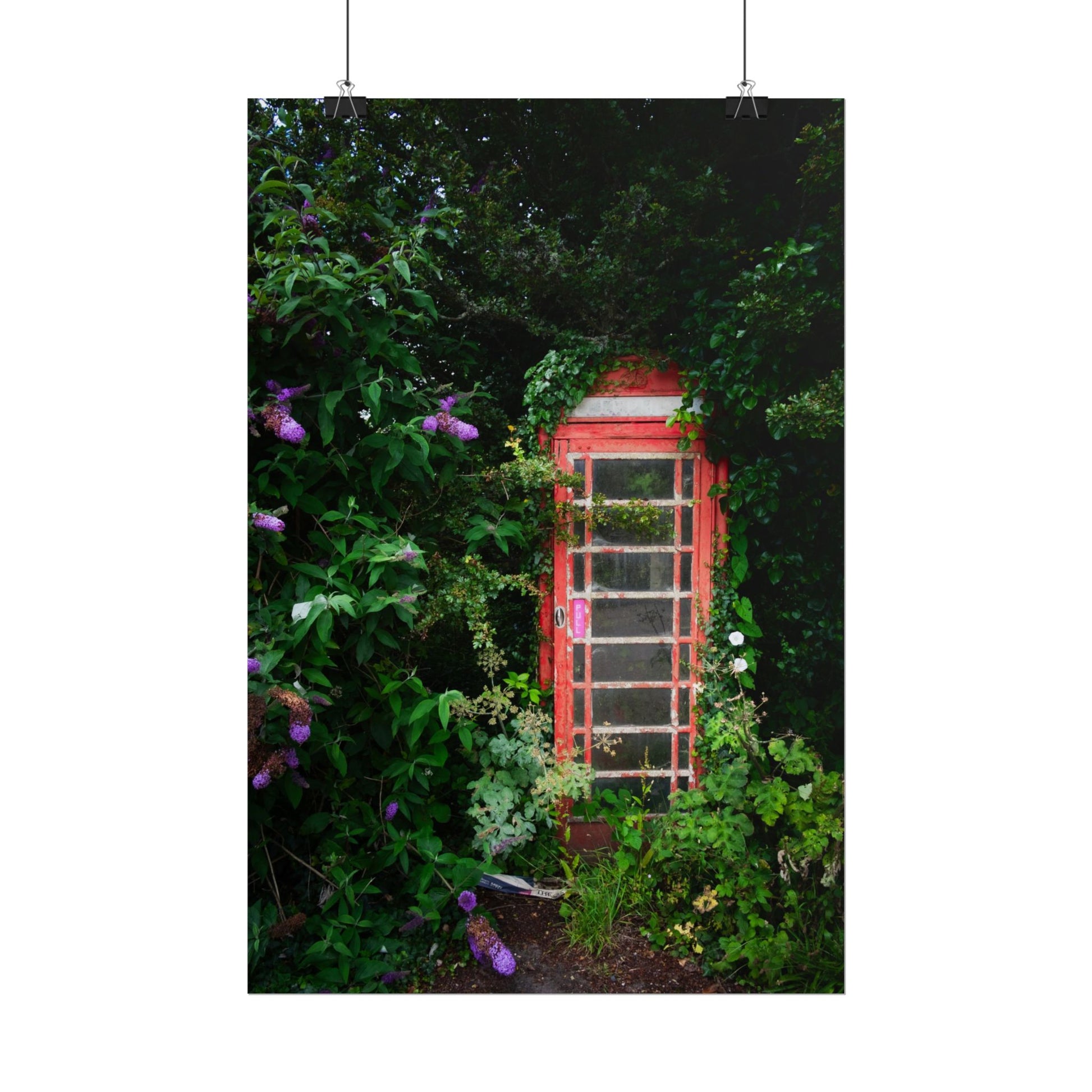 Vintage Red Phone Booth Poster — Overgrown Garden Wall Art Print